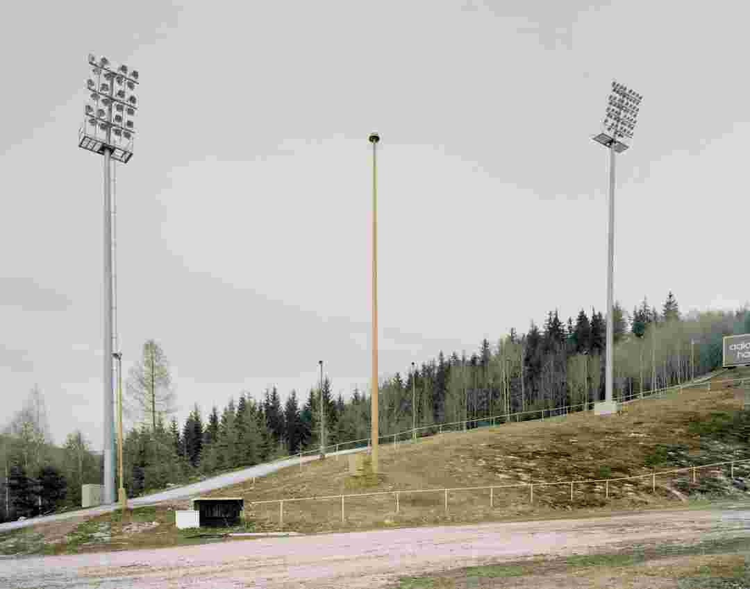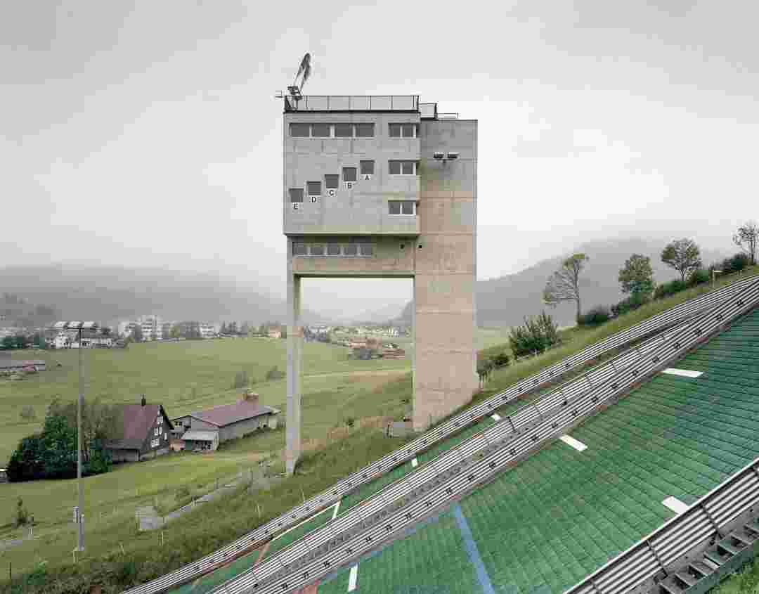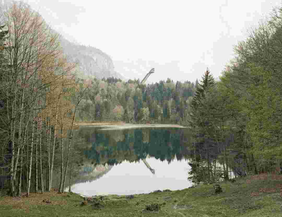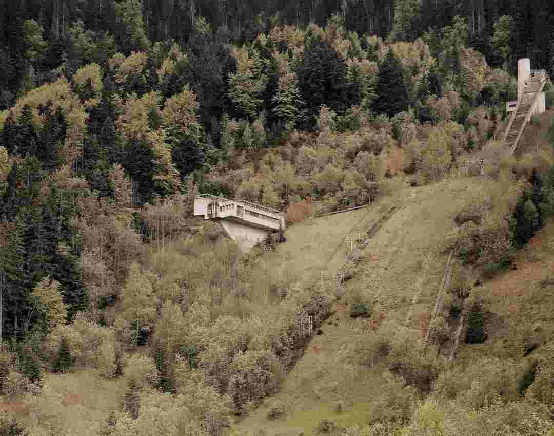 Man is a demiurge, shaping and transforming nature. The evidence of this asymmetrical relationship runs through the entire history of humankind, yet today it grips us by the throat. It is at the heart of Guillaume Collignon’s work, as shown by the photographs presented here from different series. A surveyor and traveller, Collignon has settled in several countries around the world, observing different landscapes and different ways of relating man and nature, paying particular attention to the mountains that, as a Swiss citizen, he knows well. The Monuments of Madness series, whose title is as good as a programme, is emblematic of his work. In it, ski jumps become icons of a predatory relationship that gives rise to arrogant and absurd constructions. Like the Bergisel ski jump in Innsbruck, renovated at great expense by the starchitect Zaha Hadid and used sporadically by the handful of athletes who practice the sport, its impact on the landscape is particularly striking. As is often the case in his images, Collignon stands back, observing from a distance but with precision. He seems to be outside the world, like a visitor from somewhere else whose neutral gaze is implacable. This position, and the masterful aesthetic of these images, shrouded in mist or drenched in sunlight, with their chimerical colours, make them appear to be on the edge of reality, unbelievable in the truest sense of the word. Disturbing and startling.