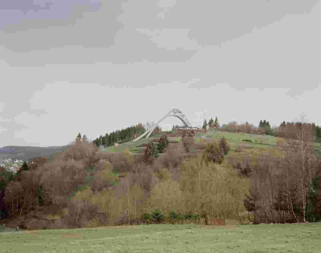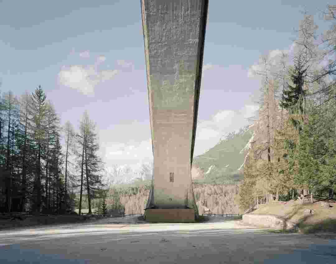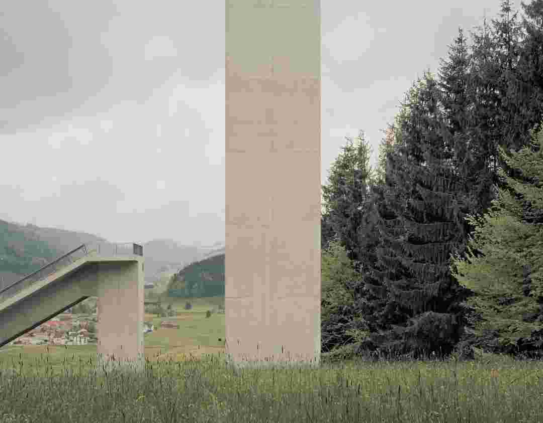 Man is a demiurge, shaping and transforming nature. The evidence of this asymmetrical relationship runs through the entire history of humankind, yet today it grips us by the throat. It is at the heart of Guillaume Collignon’s work, as shown by the photographs presented here from different series. A surveyor and traveller, Collignon has settled in several countries around the world, observing different landscapes and different ways of relating man and nature, paying particular attention to the mountains that, as a Swiss citizen, he knows well. The Monuments of Madness series, whose title is as good as a programme, is emblematic of his work. In it, ski jumps become icons of a predatory relationship that gives rise to arrogant and absurd constructions. Like the Bergisel ski jump in Innsbruck, renovated at great expense by the starchitect Zaha Hadid and used sporadically by the handful of athletes who practice the sport, its impact on the landscape is particularly striking. As is often the case in his images, Collignon stands back, observing from a distance but with precision. He seems to be outside the world, like a visitor from somewhere else whose neutral gaze is implacable. This position, and the masterful aesthetic of these images, shrouded in mist or drenched in sunlight, with their chimerical colours, make them appear to be on the edge of reality, unbelievable in the truest sense of the word. Disturbing and startling.