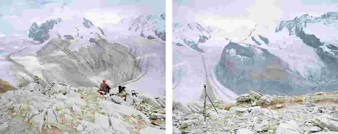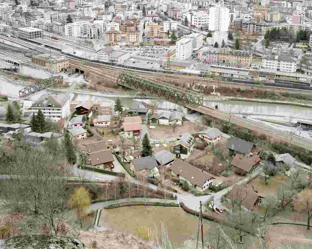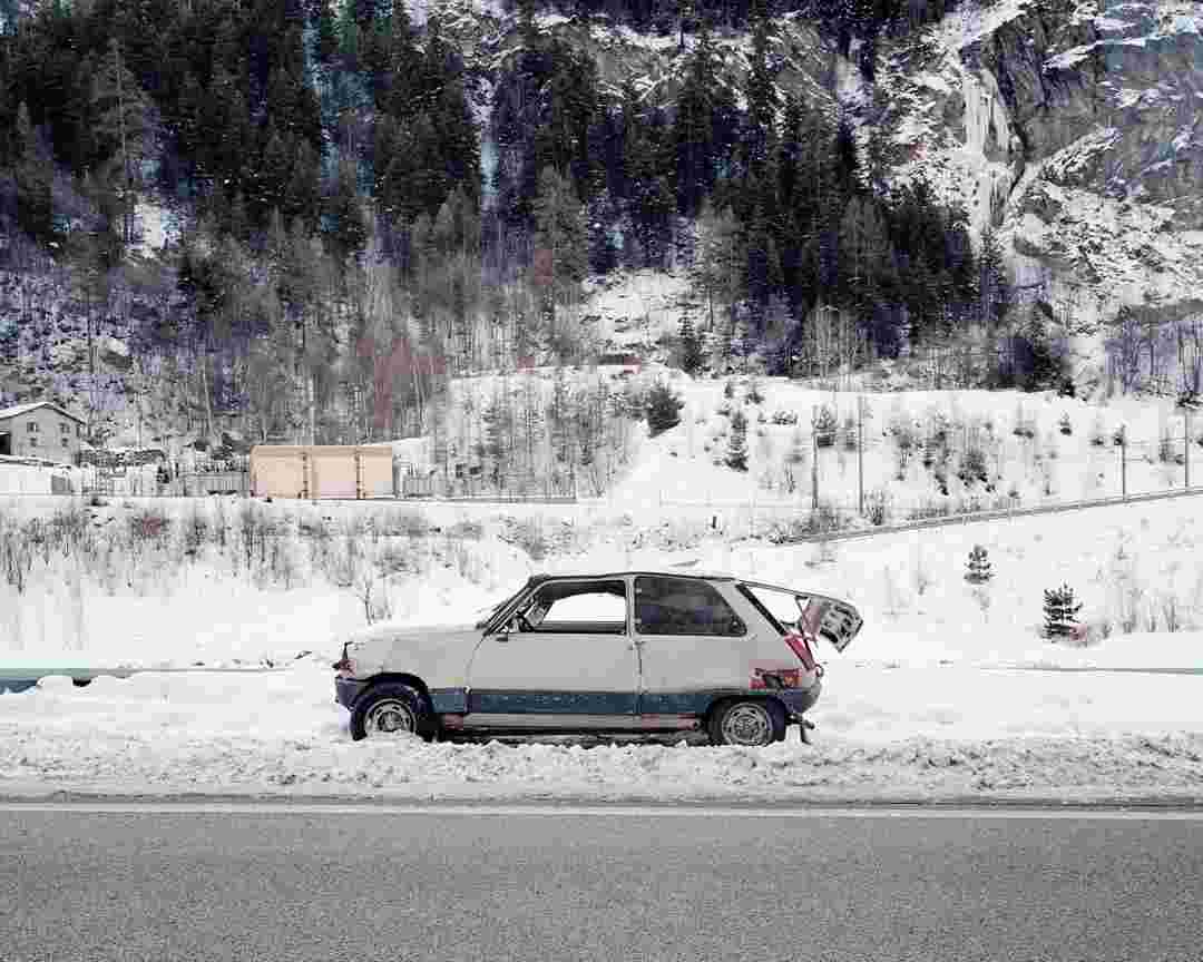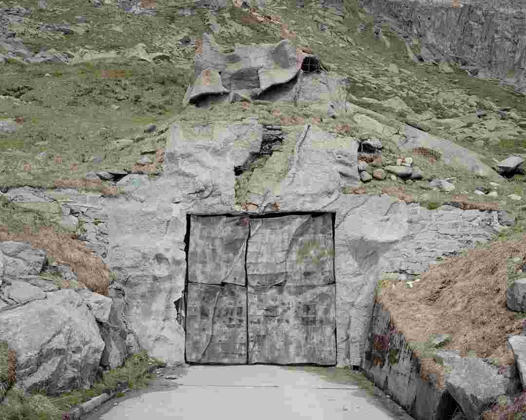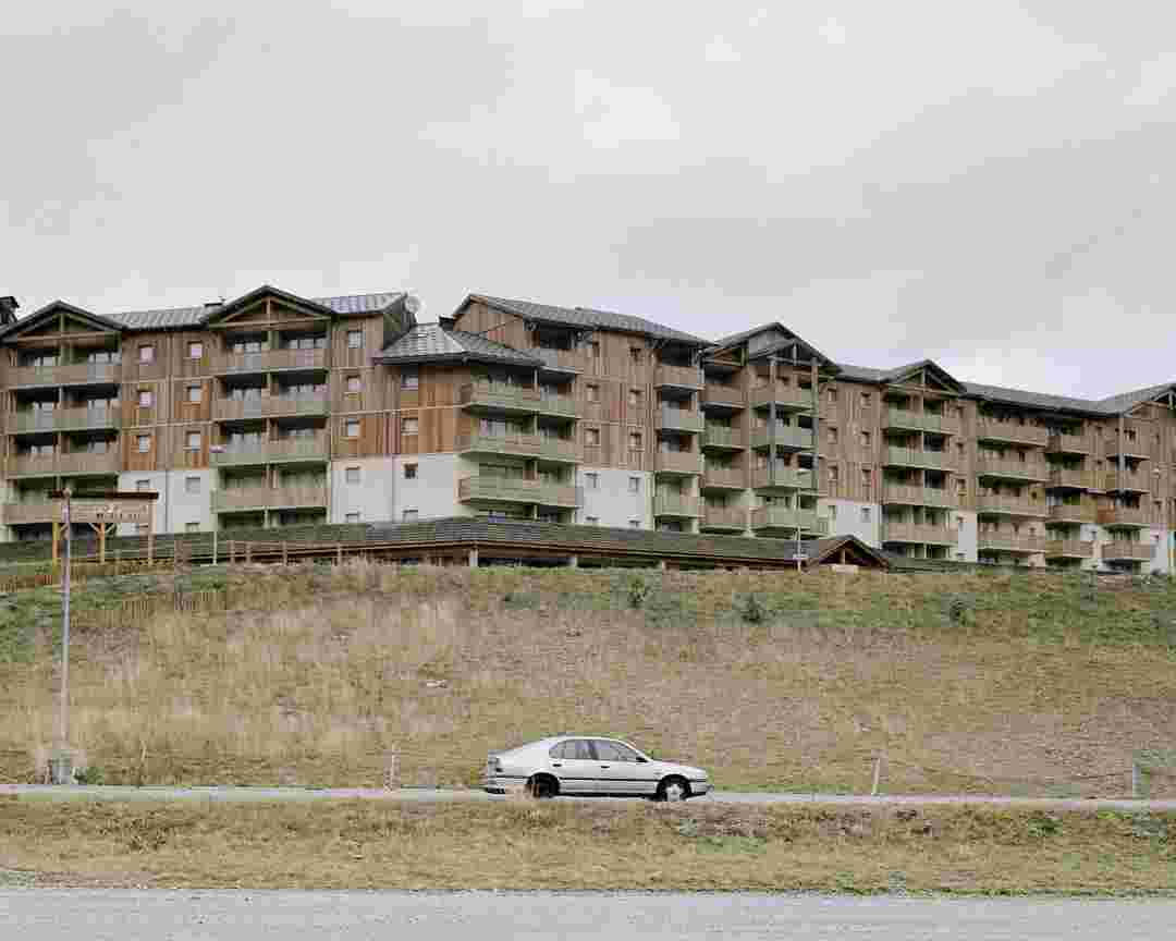 Élements alpins explores the transformation of the Alps under the impact of infrastructure and human flows. The series shows how the once hostile mountains have become a hybrid space of rock and concrete, marked by mass tourism and human activity. The photographs capture crowds engaged in various activities, offering a quasi-anthropological perspective without promoting tourism, but rather suggesting that human occupation of the mountains is an irreversible modification, transforming the Alps into anonymous and interchangeable non-places. Through human constructions and flows, space and movements sometimes recreating a new spatial and temporal dimension. The role of the mountains is also questioned: they have become a place of exoticism and mass tourism, like the many visitors exploring the ice caves in the glaciers before they disappear in a very short time…