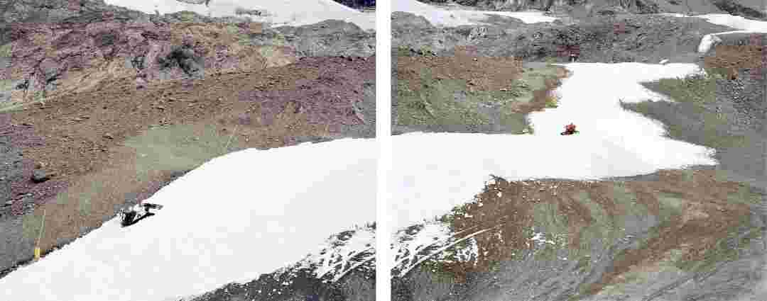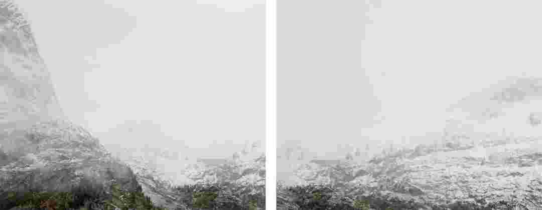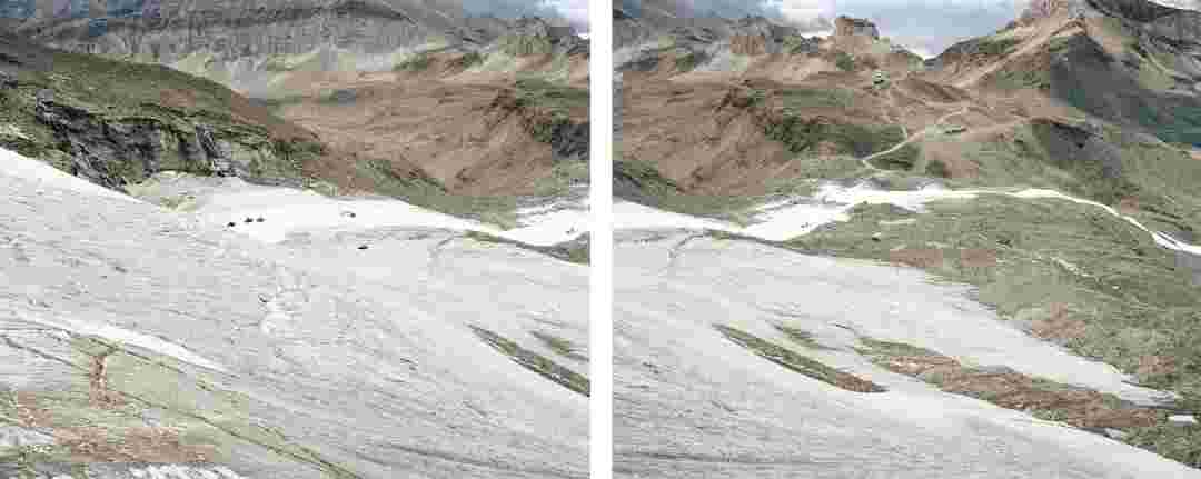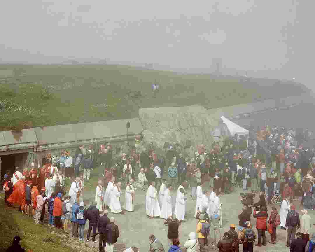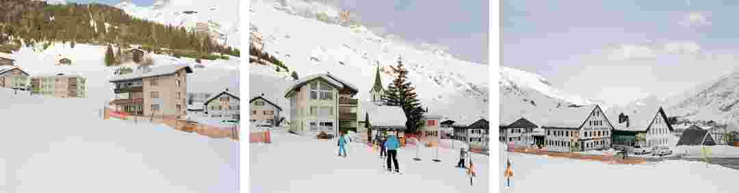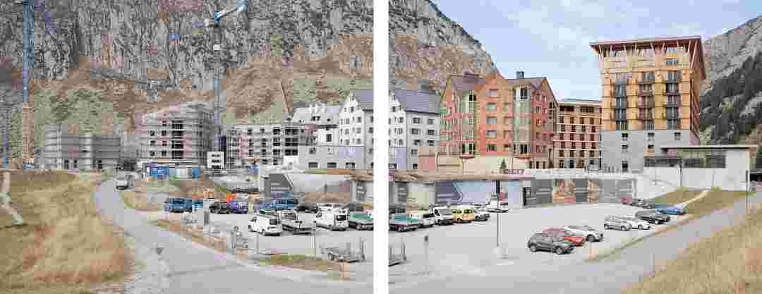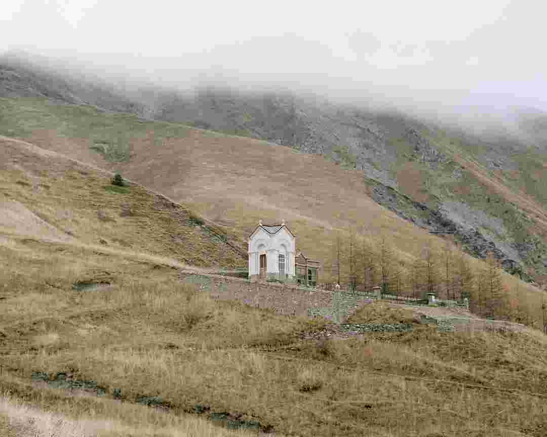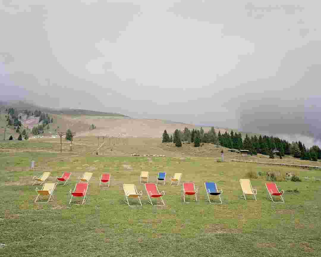 Élements alpins explores the transformation of the Alps under the impact of infrastructure and human flows. The series shows how the once hostile mountains have become a hybrid space of rock and concrete, marked by mass tourism and human activity. The photographs capture crowds engaged in various activities, offering a quasi-anthropological perspective without promoting tourism, but rather suggesting that human occupation of the mountains is an irreversible modification, transforming the Alps into anonymous and interchangeable non-places. Through human constructions and flows, space and movements sometimes recreating a new spatial and temporal dimension. The role of the mountains is also questioned: they have become a place of exoticism and mass tourism, like the many visitors exploring the ice caves in the glaciers before they disappear in a very short time…