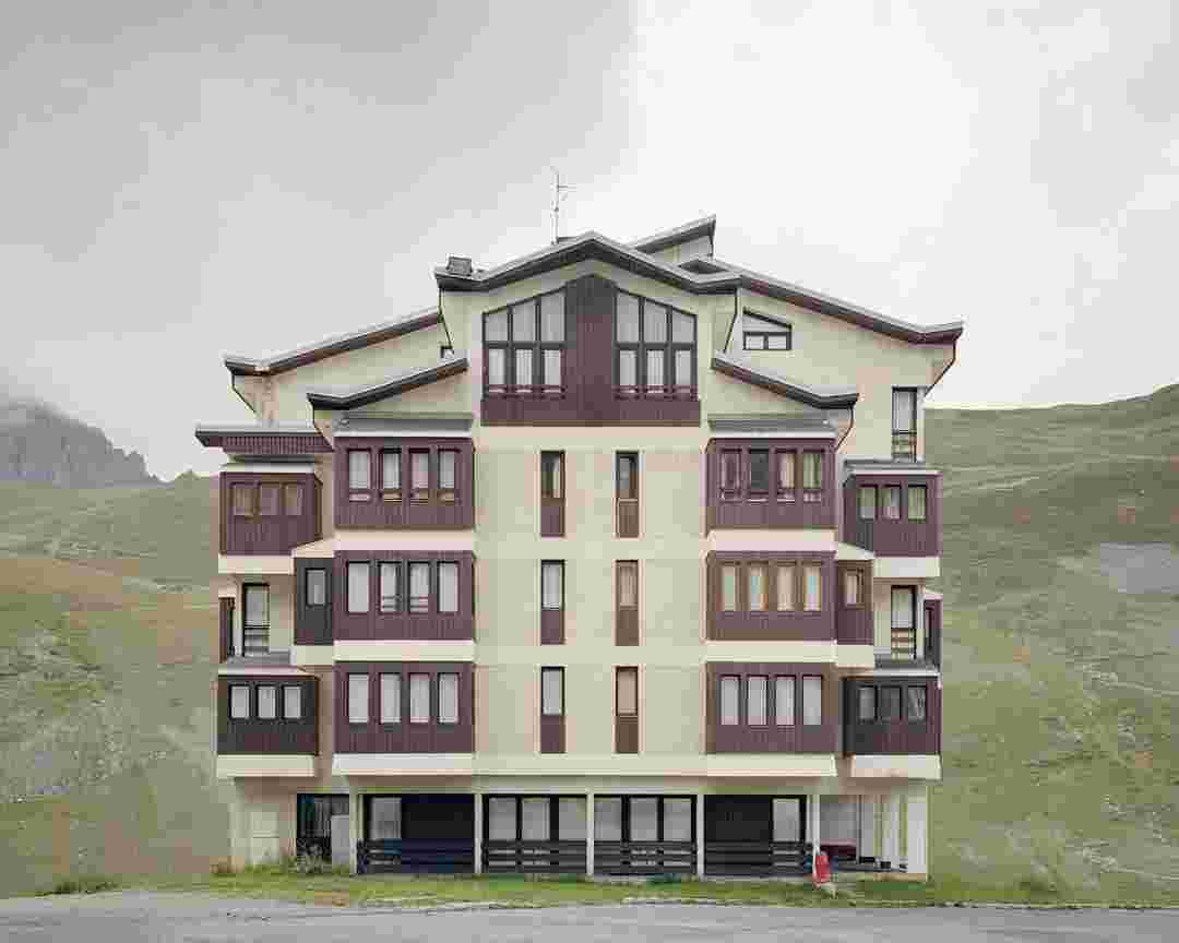 Éléments alpins explore la transformation des Alpes sous l’impact des infrastructures et des flux humains. La série montre comment les montagnes, autrefois hostiles, sont devenues un espace hybride de roches et de béton, marqué par le tourisme de masse et les activités humaines. Les photographies capturent des foules dans diverses activités, offrant une perspective quasi-anthropologique sans promouvoir le tourisme, mais suggérant plutôt que l’occupation humaine des montagnes est une modification irréversible, transformant les Alpes en non-lieux anonymes et interchangeables. À travers les constructions et les flux humains, l’espace et les mouvements sont interrogés, recréant parfois une nouvelle dimension spatiale et temporelle. Le rôle de la montagne est également questionné: elle est devenue un lieu d’exotisme et de tourisme de masse, comme ces nombreux visiteurs explorant les grottes de glace des glaciers avant leur disparition prévue dans très peu de temps…