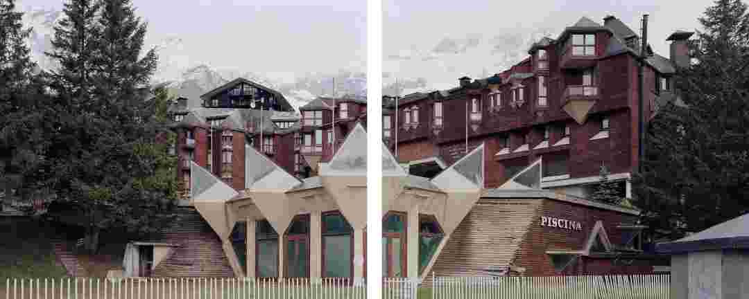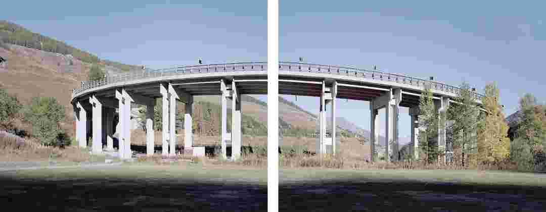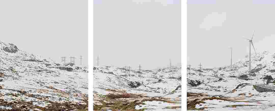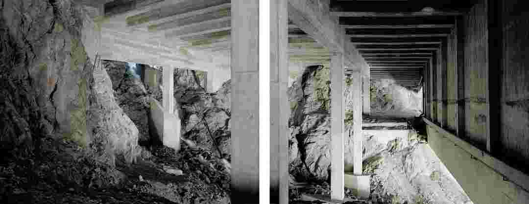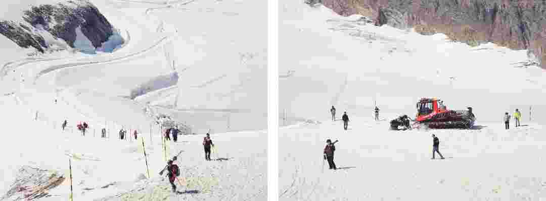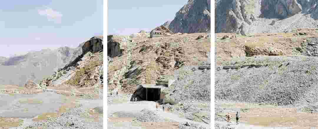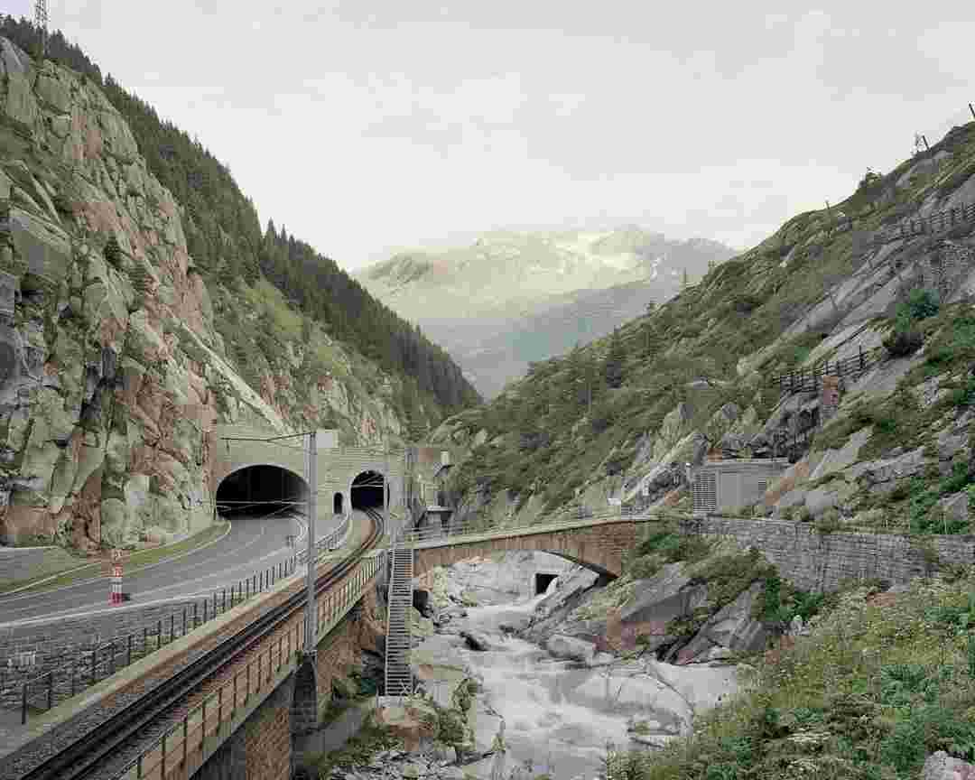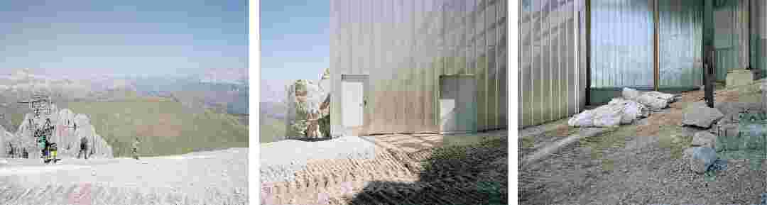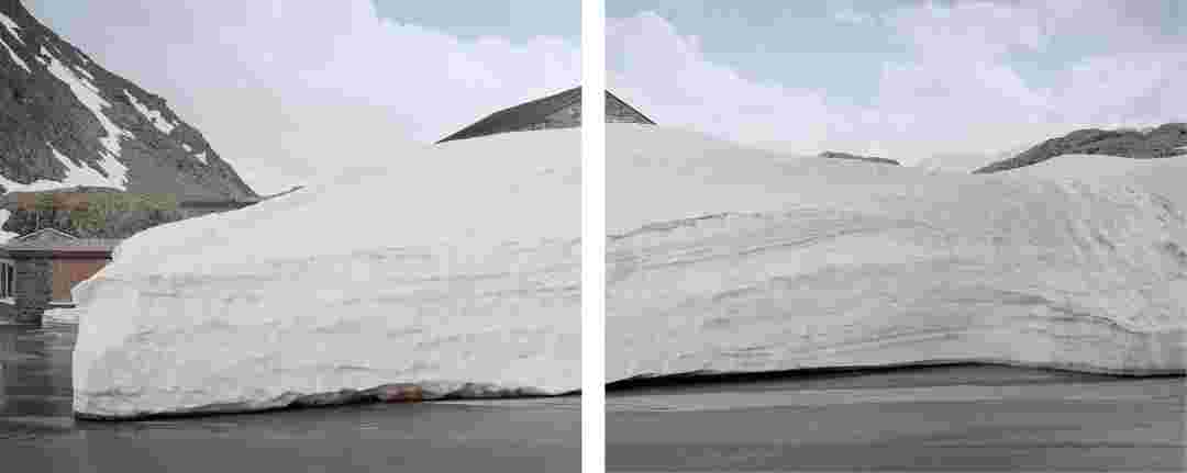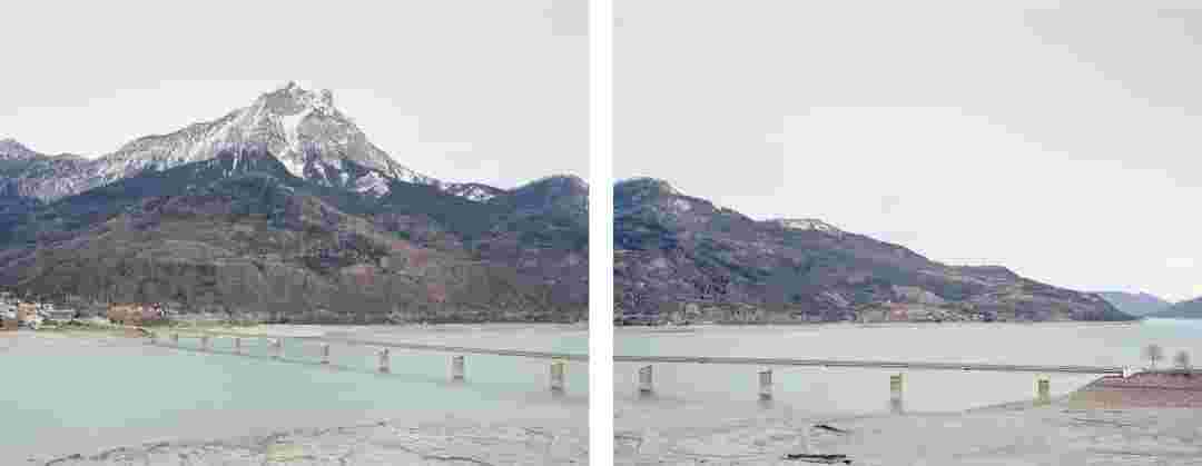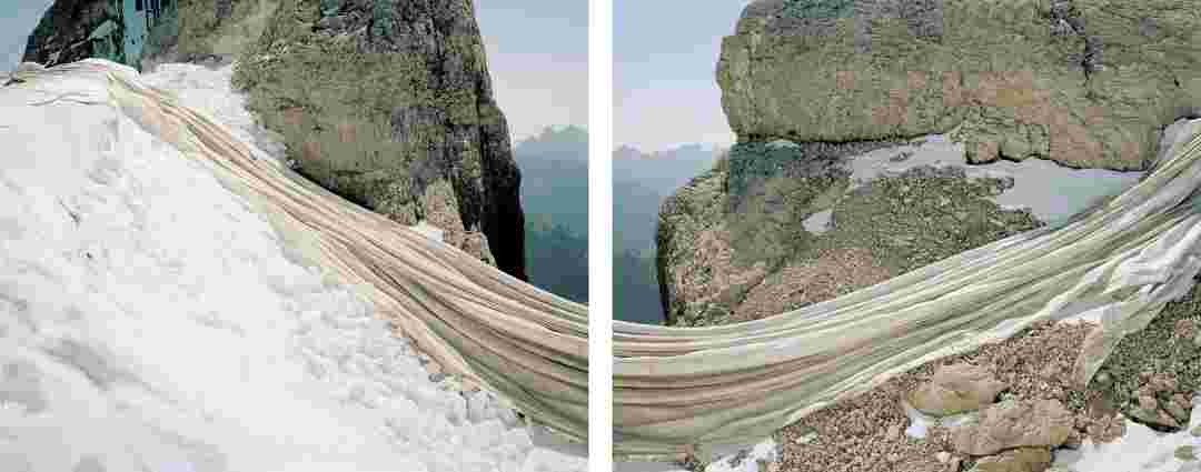 Élements alpins explores the transformation of the Alps under the impact of infrastructure and human flows. The series shows how the once hostile mountains have become a hybrid space of rock and concrete, marked by mass tourism and human activity. The photographs capture crowds engaged in various activities, offering a quasi-anthropological perspective without promoting tourism, but rather suggesting that human occupation of the mountains is an irreversible modification, transforming the Alps into anonymous and interchangeable non-places. Through human constructions and flows, space and movements sometimes recreating a new spatial and temporal dimension. The role of the mountains is also questioned: they have become a place of exoticism and mass tourism, like the many visitors exploring the ice caves in the glaciers before they disappear in a very short time…